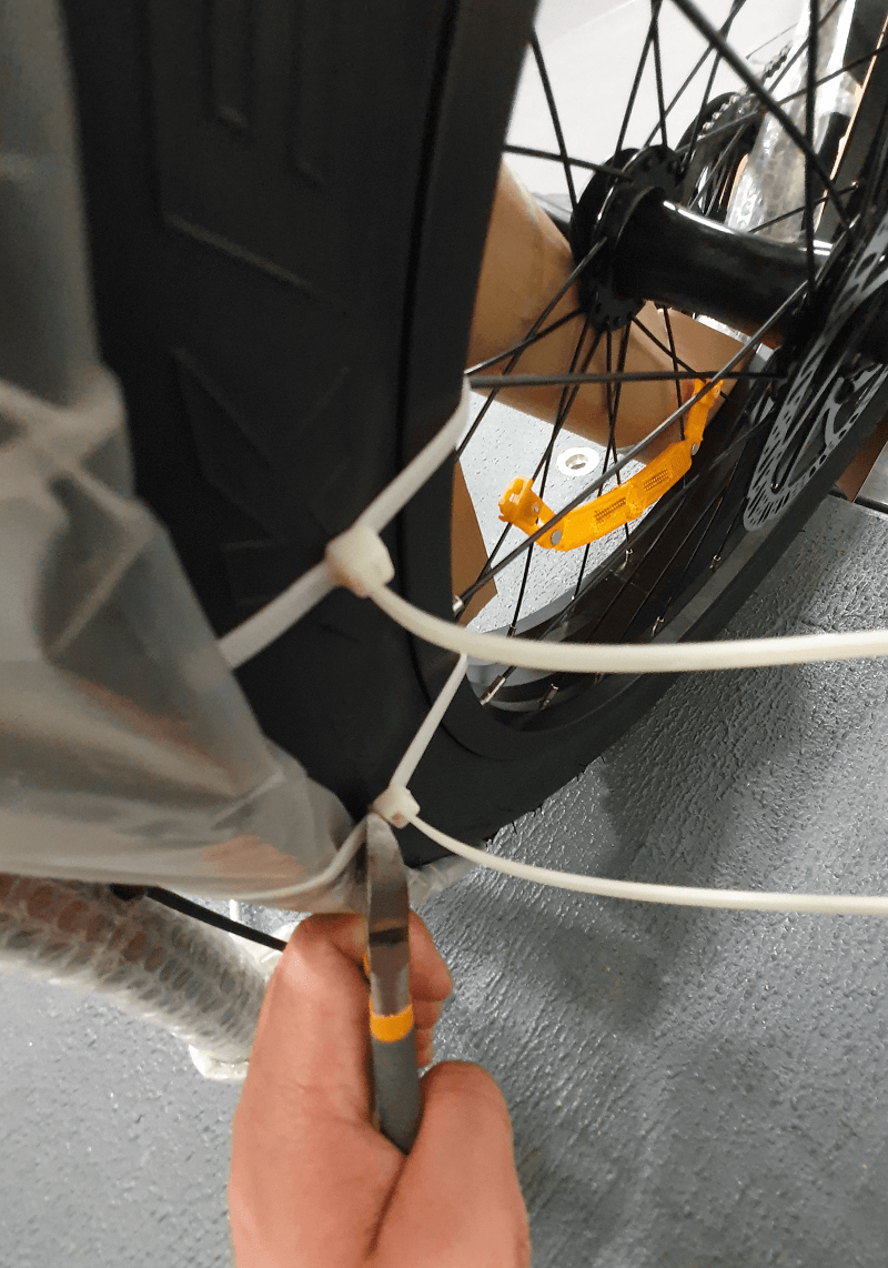 Remove plastic protectors from both sides of the front wheel.